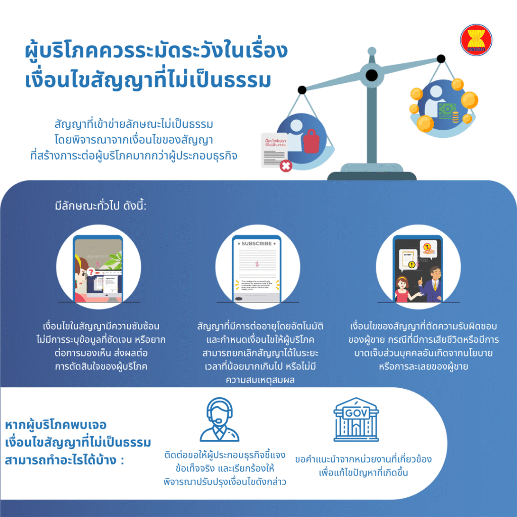 ผู้บริโภคควรระมัดระวังในเรื่องเงื่อนไขสัญญาที่ไม่เป็นธรรม